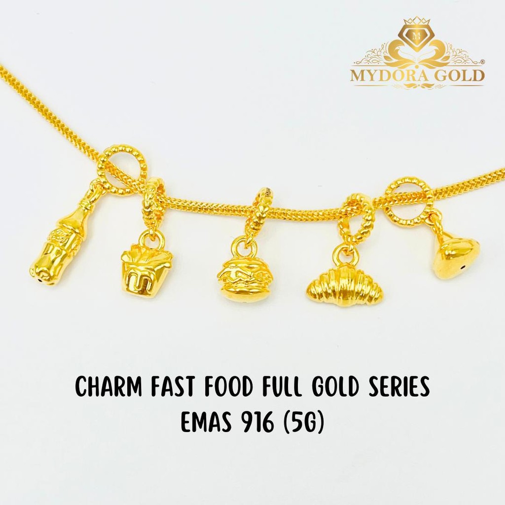 Product Info: Charm Fast Food Full Gold Series (5G Technology - Hollow) Gold Purity : 916/22k Gold (Imported) Hole : 0.4cm Weight : 0.20gm - 0.30gm+/- **HOLLOW & LIGHWEIGHT ITEM, PLEASE WEAR WITH CARE**