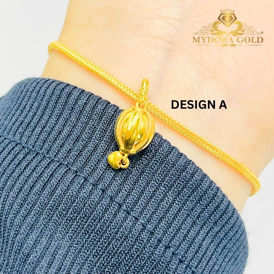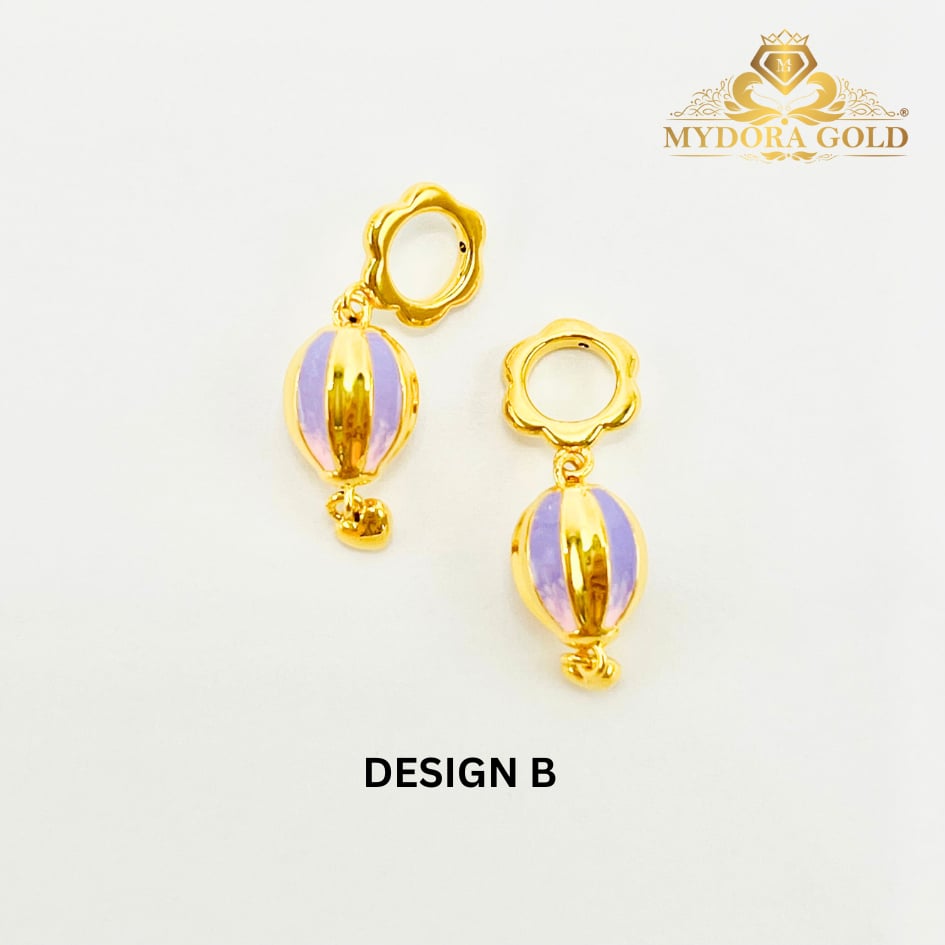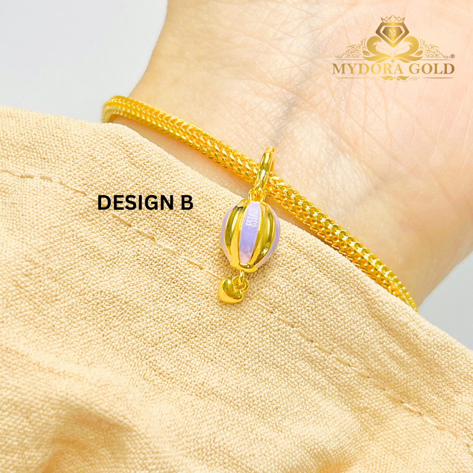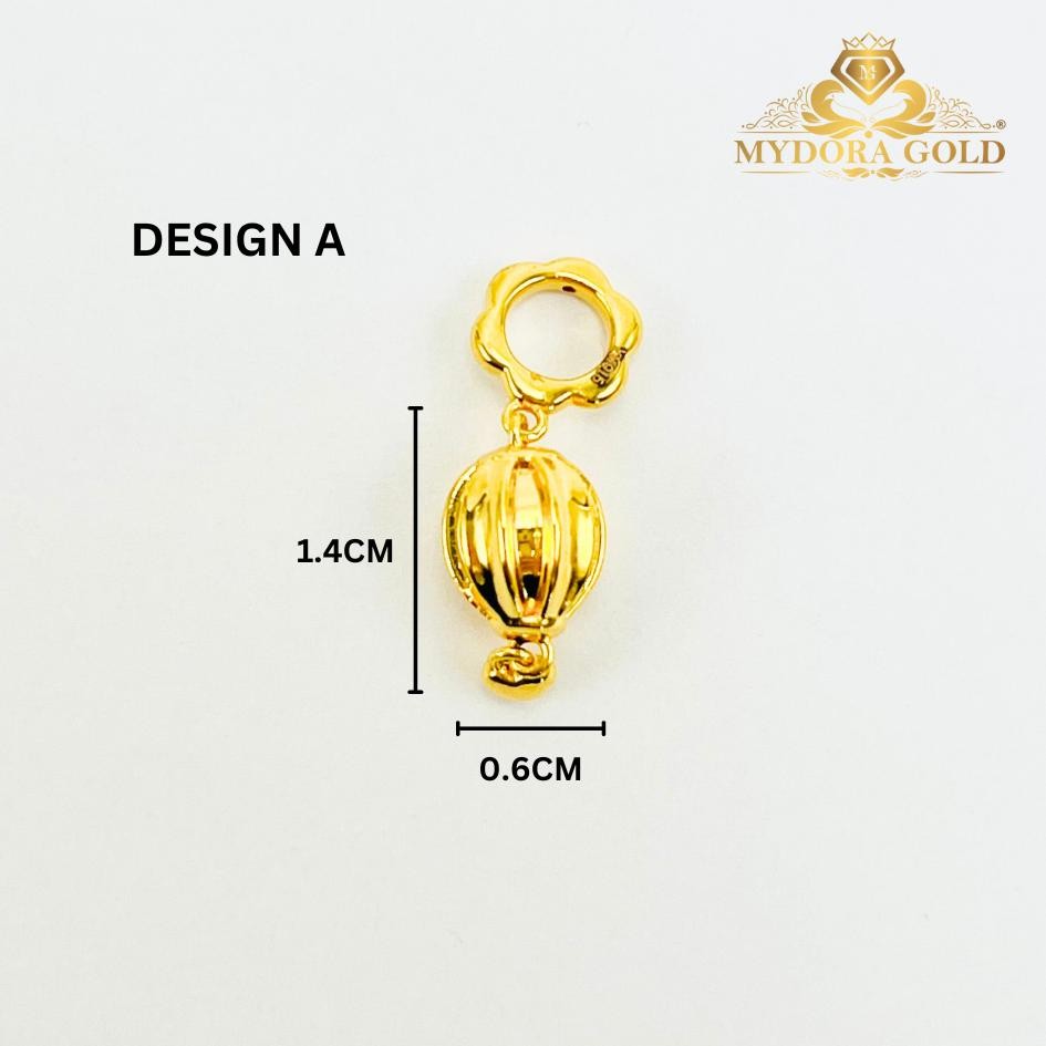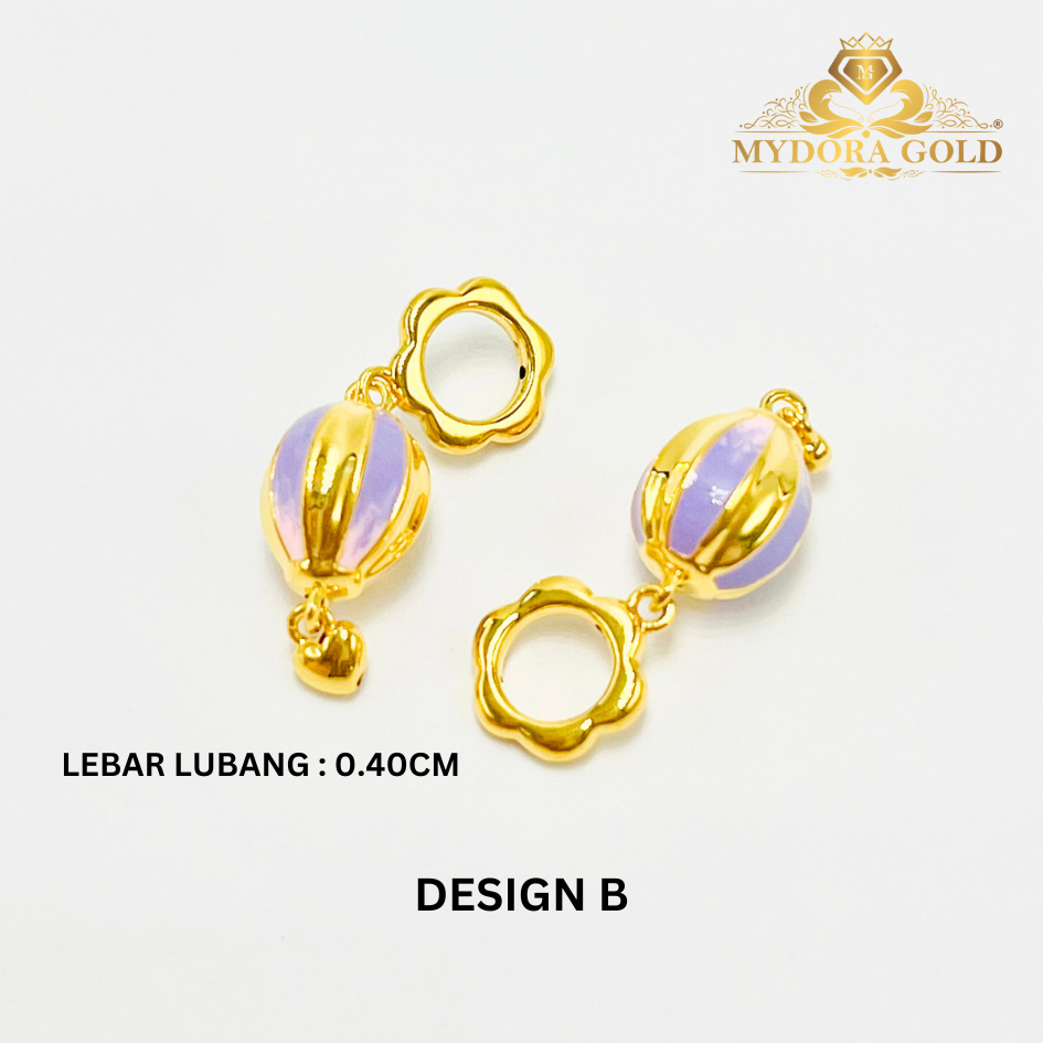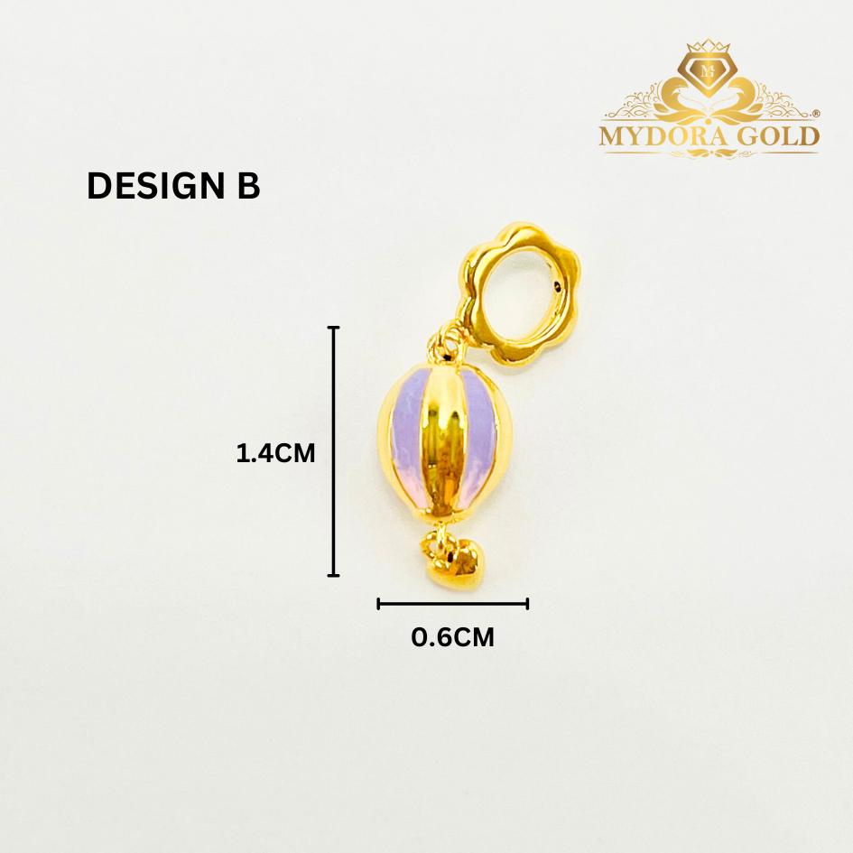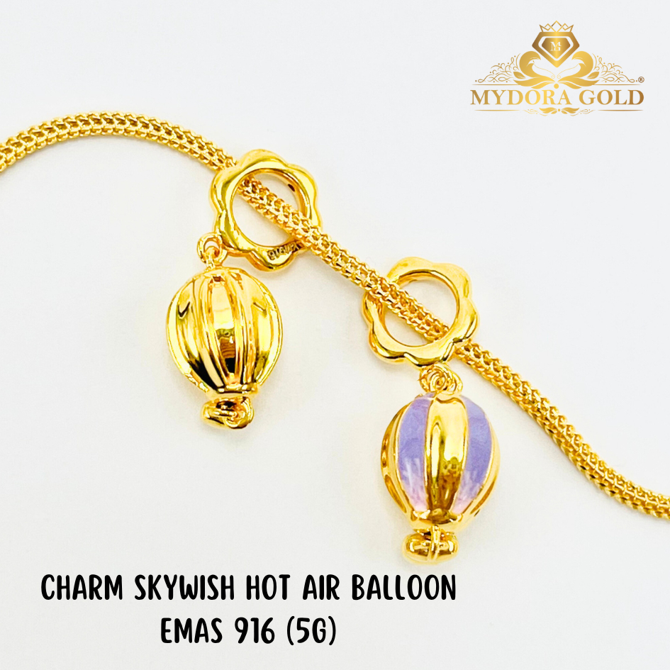 Product Info: Charm Skywish Hot Air Balloon Material : 916 Gold Design A (Full Gold) Size : 1.4cm x 0.6cm Hole : 0.40cm Design B (Enamel) Size : 1.4cm x 0.6cm Hole : 0.40cm Sesuai dipakai dengan tali/gelang PDR, atau loket.