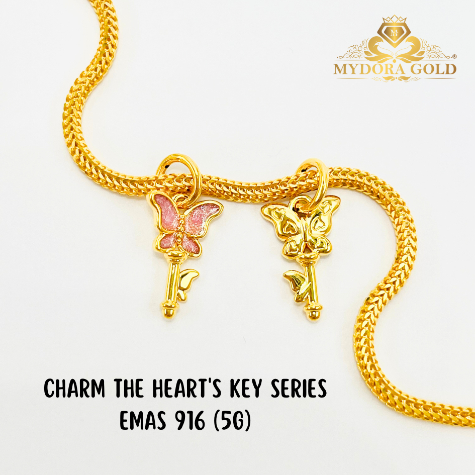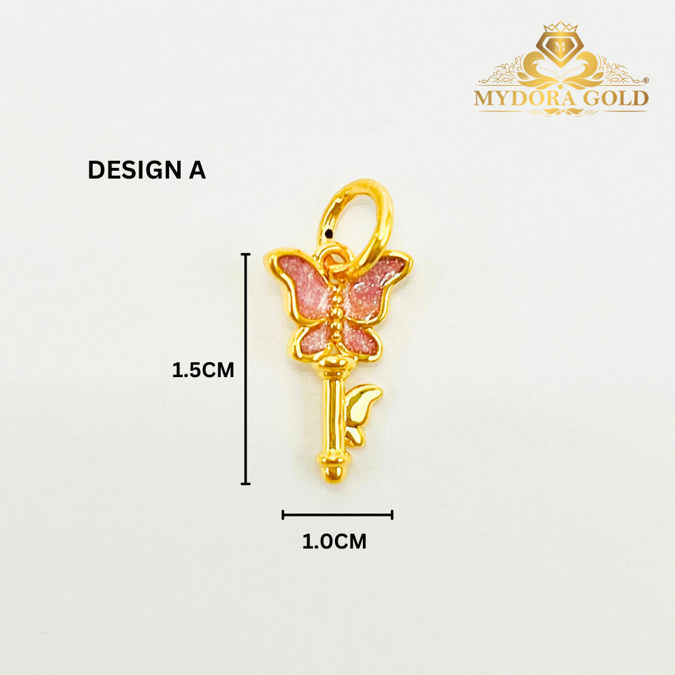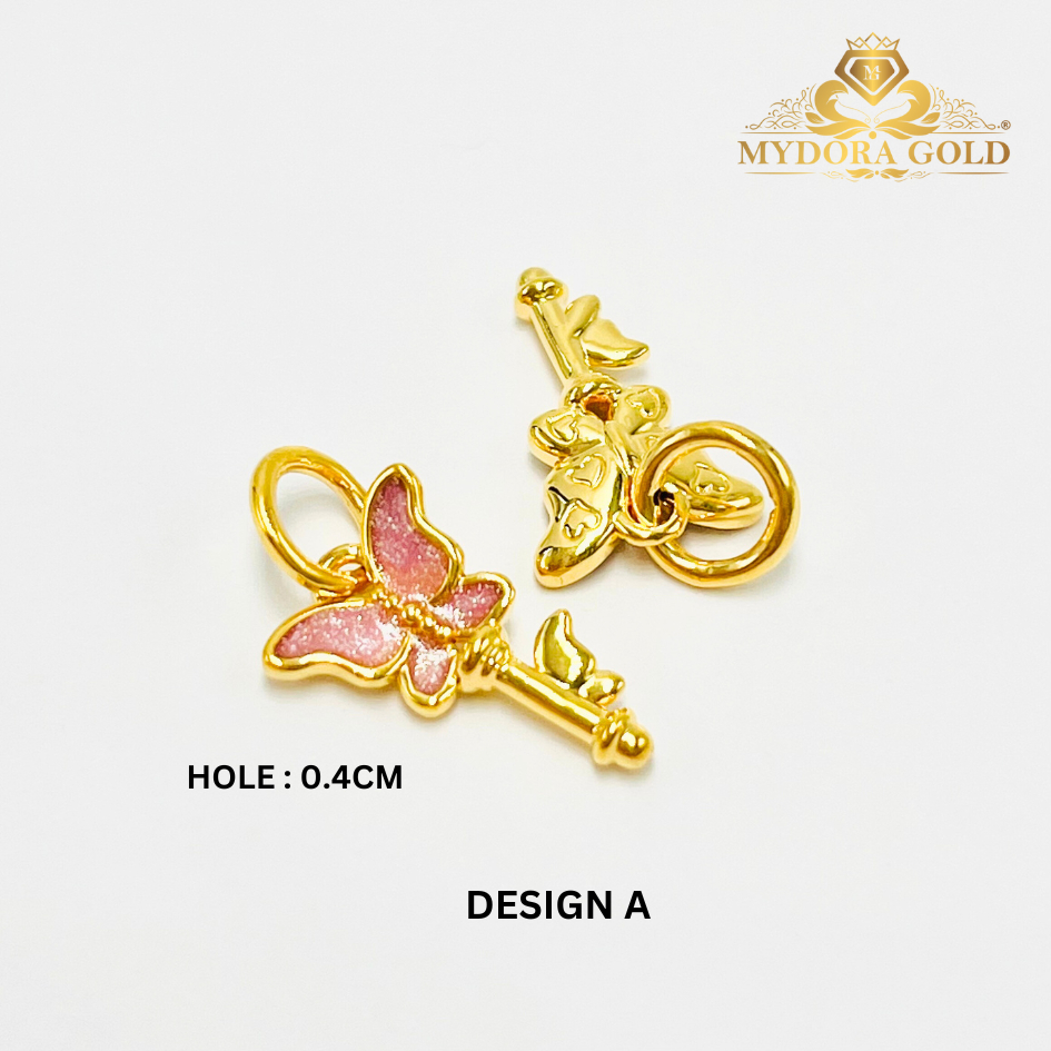 Product Info : Charm The Heart's Key Series (5G Technology -Hollow) Gold Purity : 916/22k Gold (Imported) Design A (Butterfly Key) Hole : 0.40cm Dimension: 1.5cm x 1.0cm Weight : 0.27gm - 0.28gm **HOLLOW & LIGHWEIGHT ITEM, PLEASE WEAR WITH CARE**