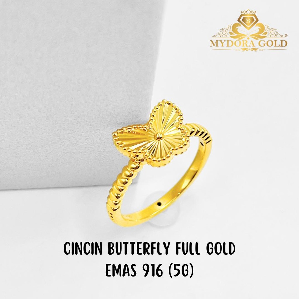 Cincin Butterfly Full Gold (5G Technology -Hollow Ring)