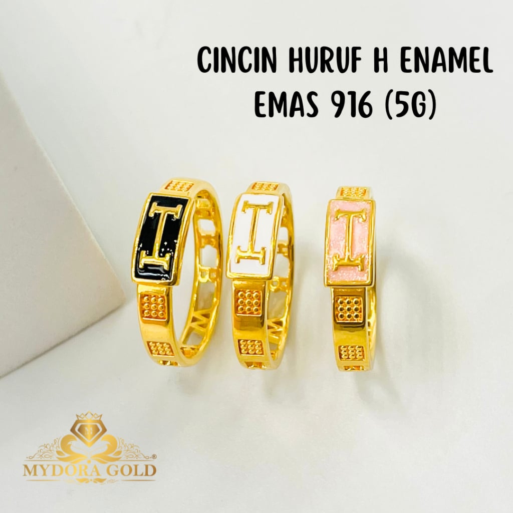 Product Info: Cincin Huruf H Enamel (5G Technology -Hollow Ring) Gold Purity : 916/22k Gold (Imported) Design : BLACK/ WHITE / PINK Berat : 0.50gm - 0.70gm +/- Size : s10 - s21 **HOLLOW & LIGHWEIGHT ITEM, PLEASE WEAR WITH CARE**