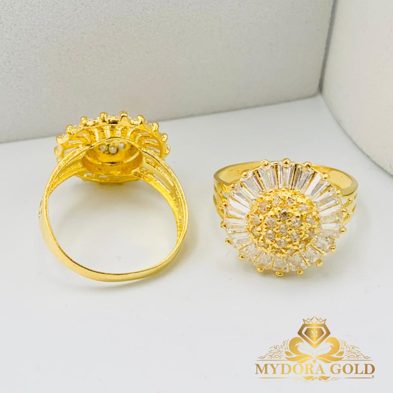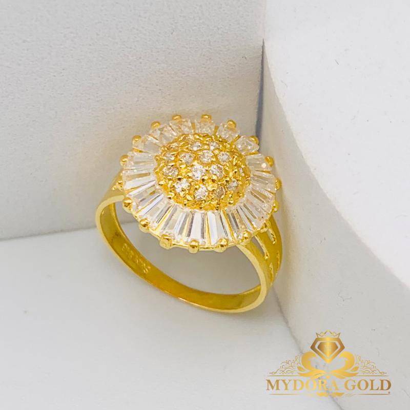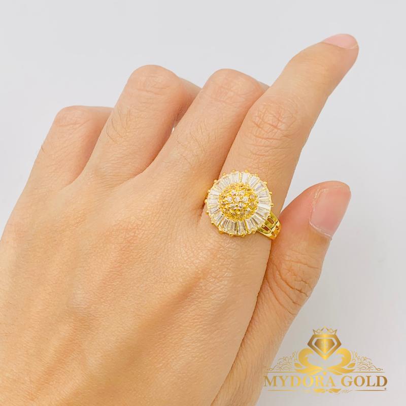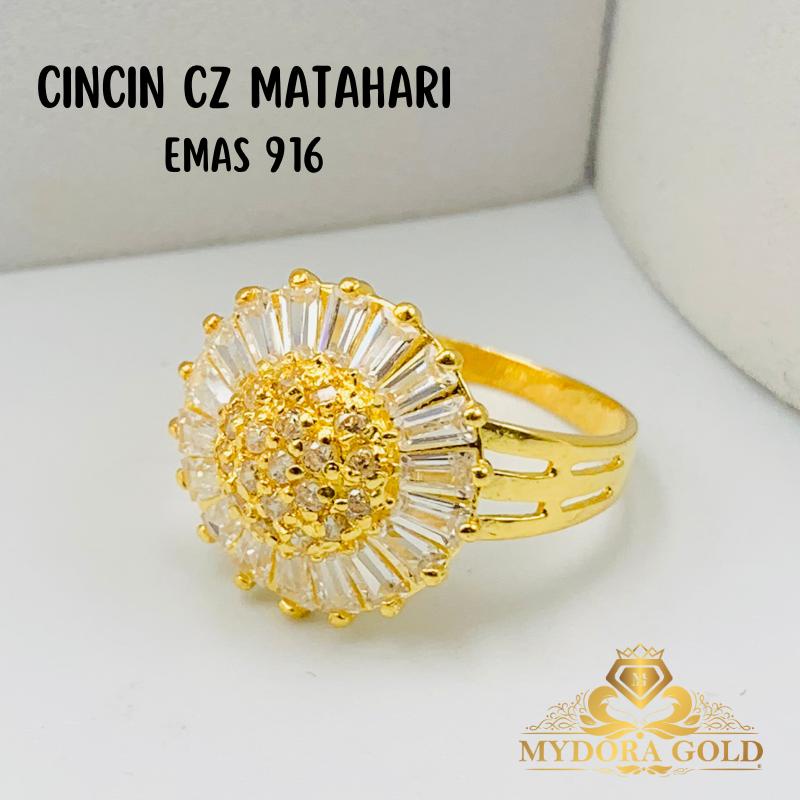 Product Info: Material : EMAS 916 Cincin Emas 916 dengan batu permata CZ Lebar Bunga Matahari : 1.6cm