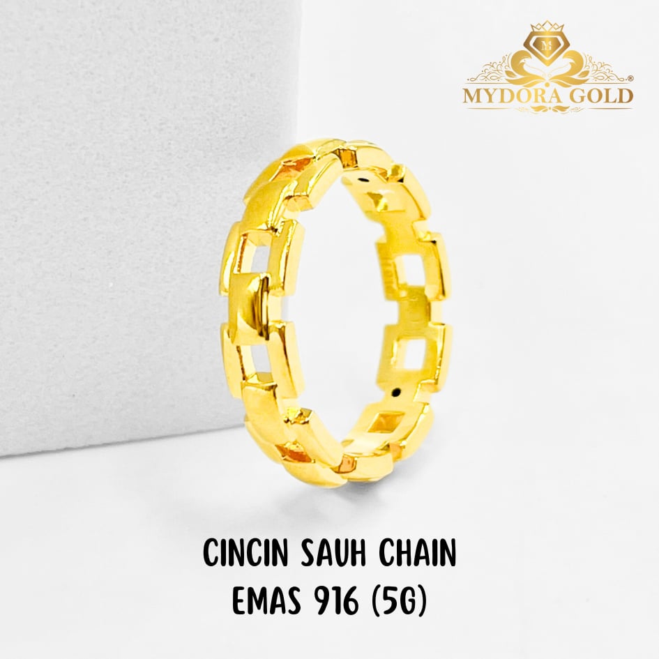 Discover elegance with the MYDORA Cincin Sauh Chain 5G, crafted from high-quality Emas 916/22k gold.