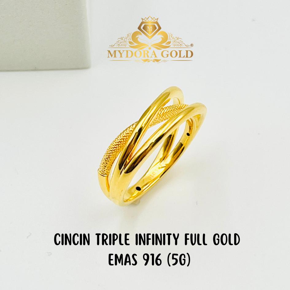 Cincin Triple Infinity Full Gold (5G Technology -Hollow Ring)