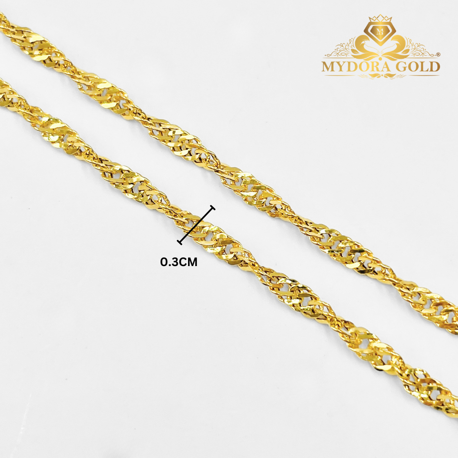 Produk Info Material : EMAS 916 Panjang: 44cm , 51cm , 58cm Berat:2.92gm - 3.53gm+/- Lebar : 0.3cm +/- ** Rantai Leher jenis padu **