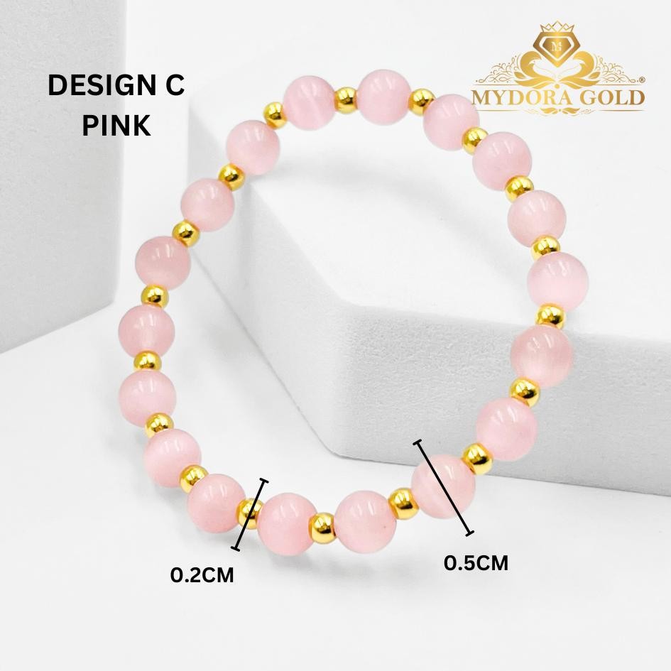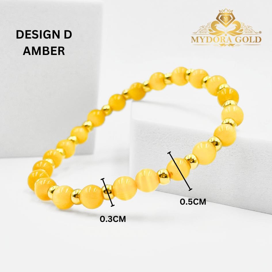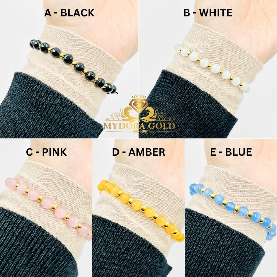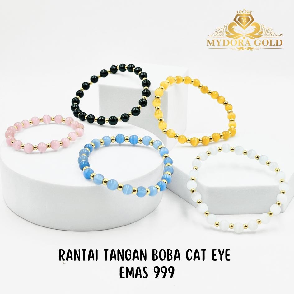 Product Info: Purity : EMAS 999/24K Manik Boba Emas : 0.2cm & 0.3cm +/- Rantai tangan biji cat eye + manik boba emas 999 DESIGN A: BLACK DESIGN B: WHITE DESIGN C: PINK DESIGN D: AMBER DESIGN E: BLUE