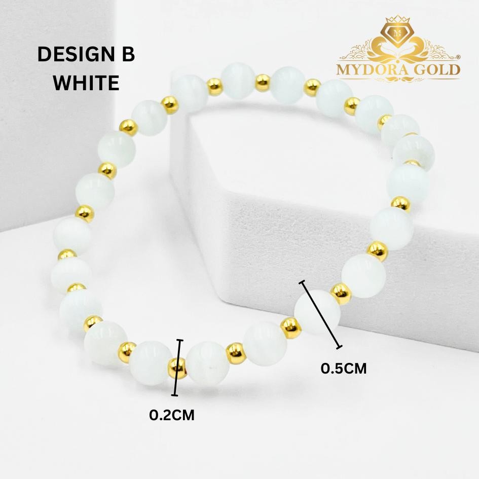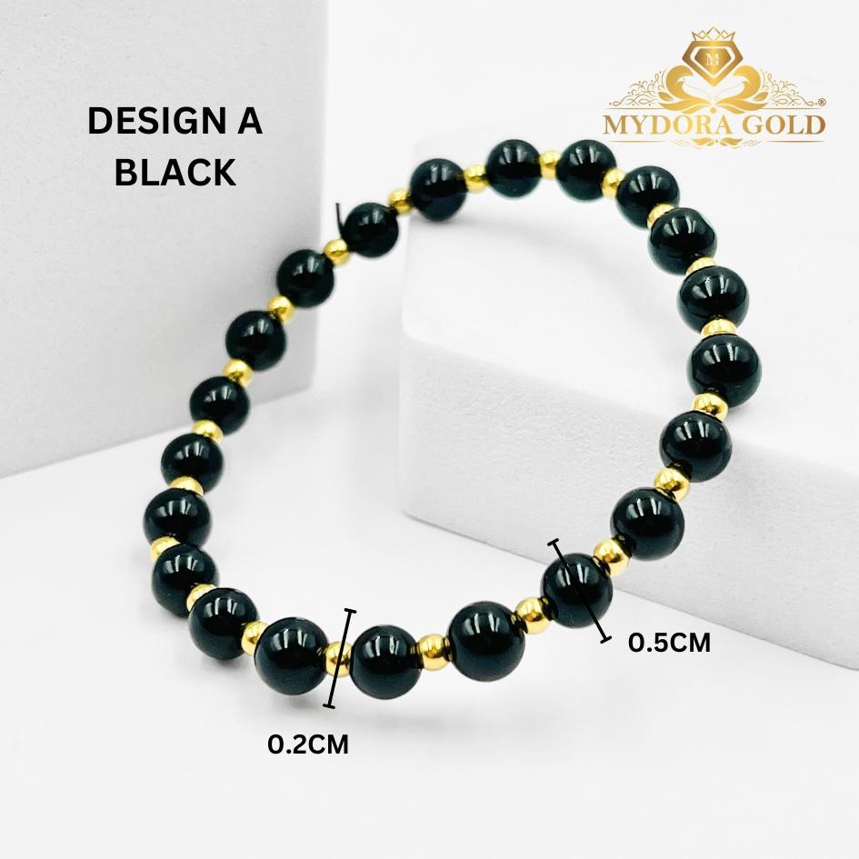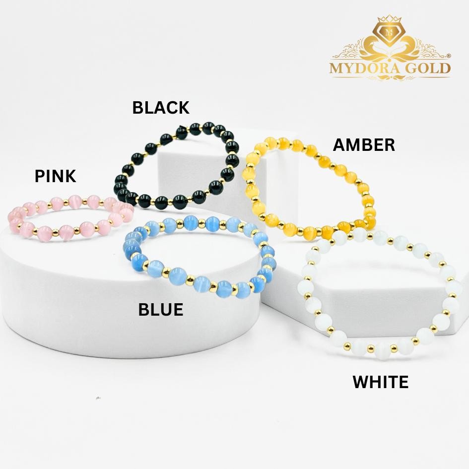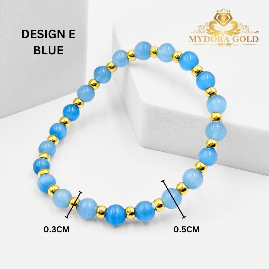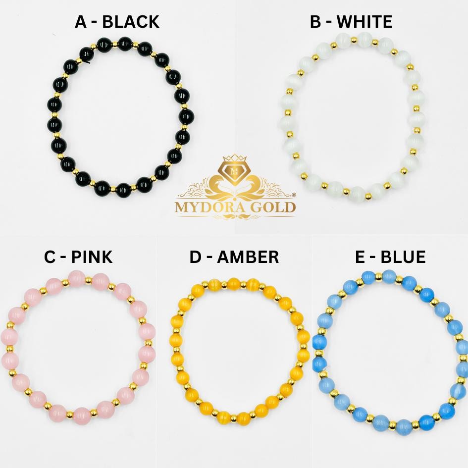 Product Info: Purity : EMAS 999/24K Manik Boba Emas : 0.2cm & 0.3cm +/- Rantai tangan biji cat eye + manik boba emas 999 DESIGN A: BLACK DESIGN B: WHITE DESIGN C: PINK DESIGN D: AMBER DESIGN E: BLUE