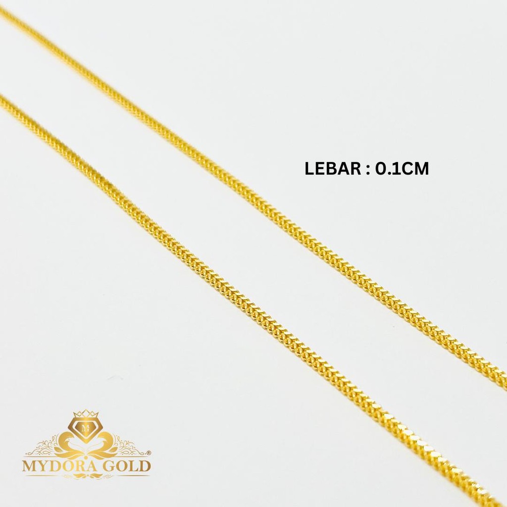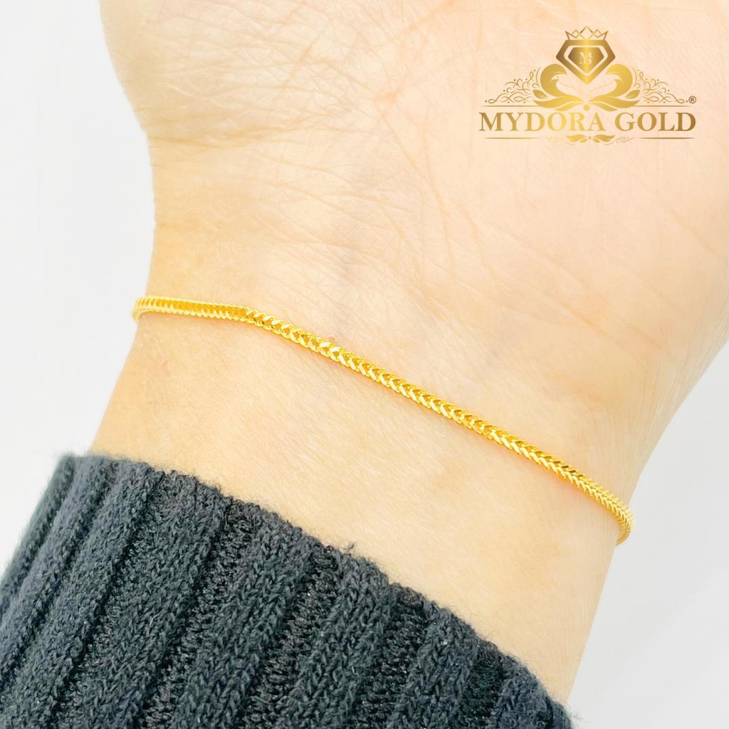 Product Info: Rantai Tangan Double Mesin Material : EMAS 916 Panjang : 13.5cm - 18.5cm Berat : 1.44gm - 1.79gm Lebar : 0.1cm