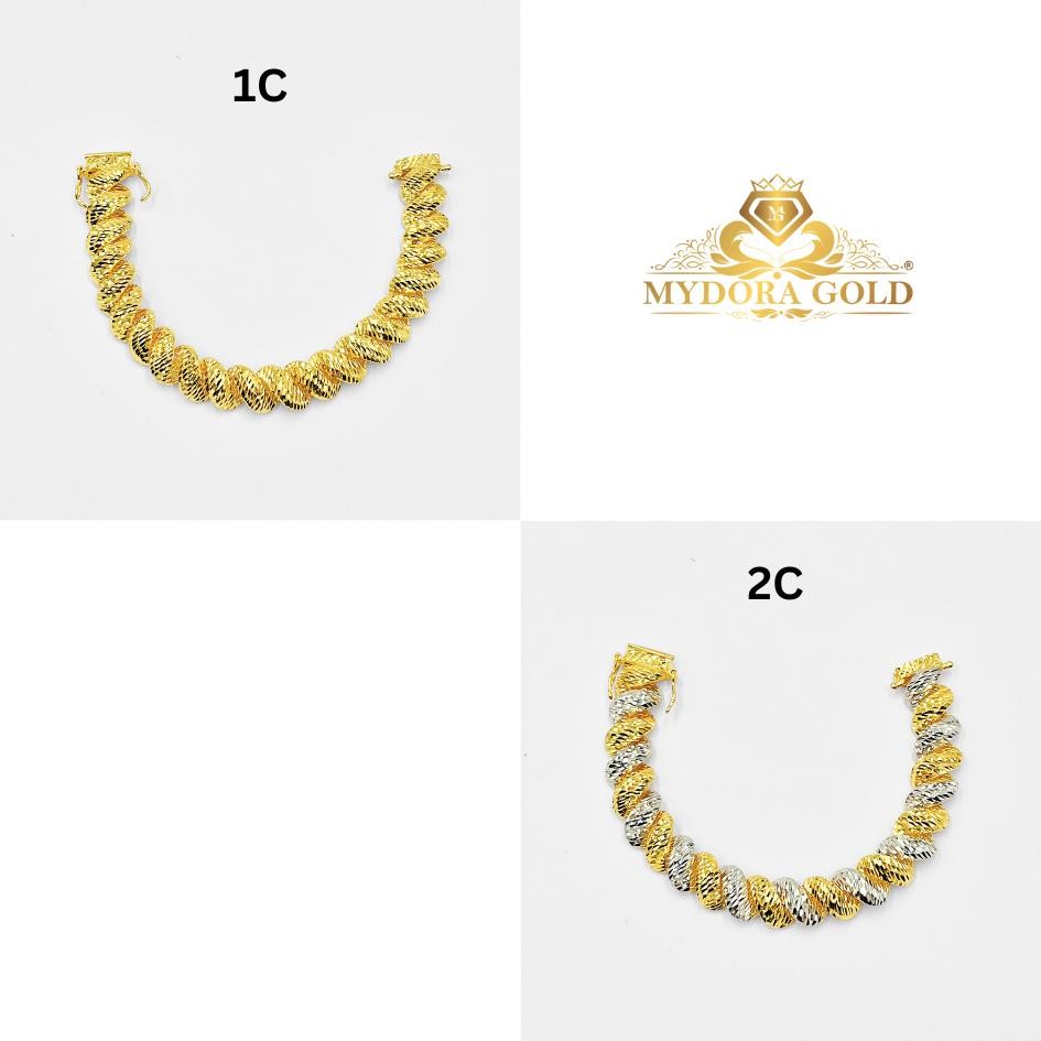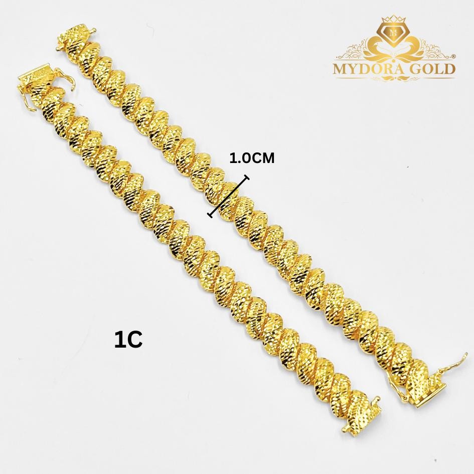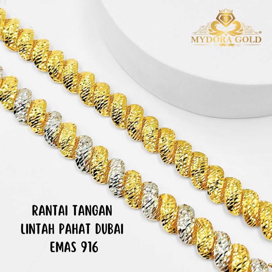 Product Info : Material : EMAS 916 Rantai Tangan Lintah Pahat Dubai Design: 1C & 2C Lebah : 1.0cm Berat : 12.73gm - 14.17gm+/- Panjang : 14.5cm-17cm