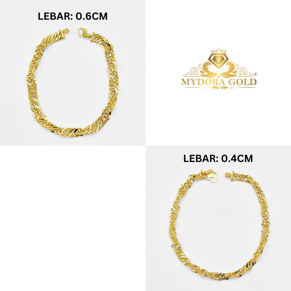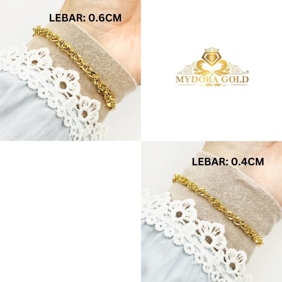 Produk Info: Rantai Tangan Lipan Kait Gila2 Budak Lebar: 0.35cm/ 0.55cm Berat : 1.30gm - 2.21gm +/- Panjang: 13cm-14cm