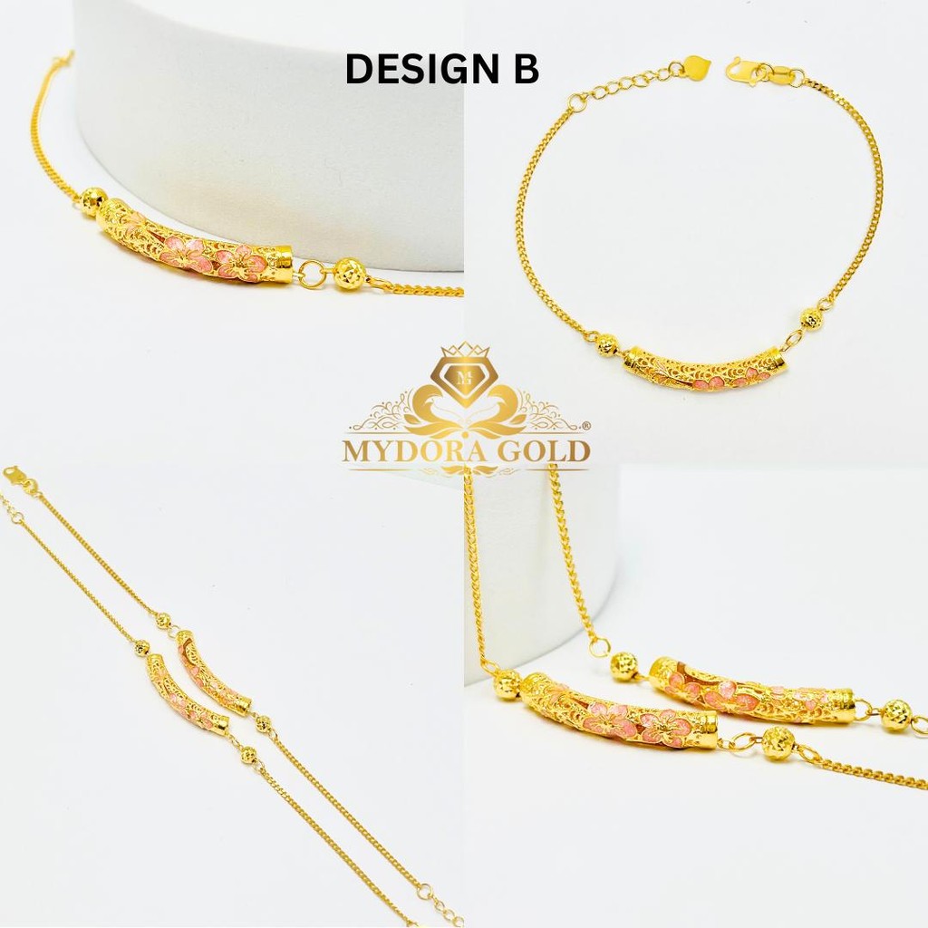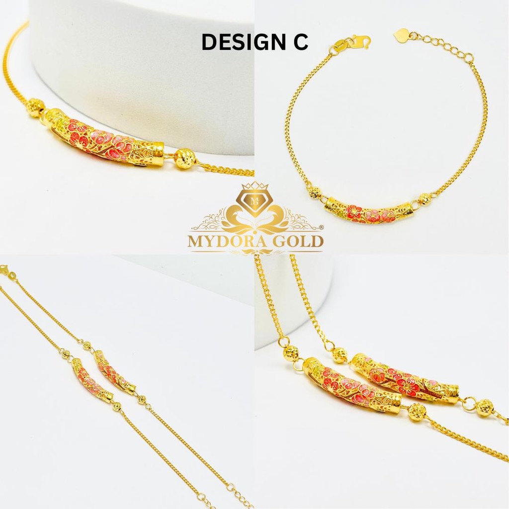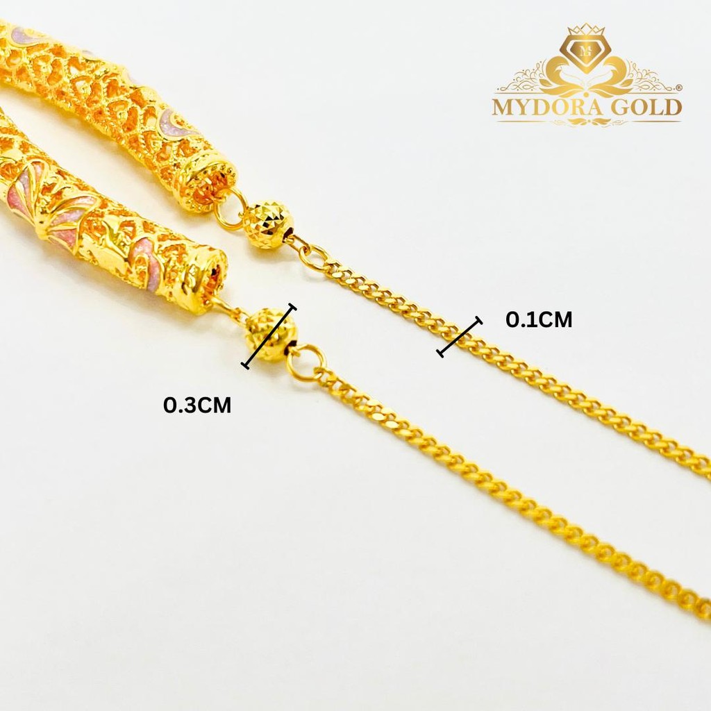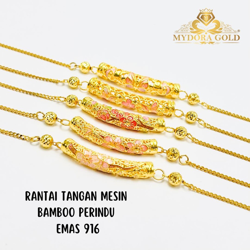 Product Info: Rantai Tangan Mesin Bamboo Kerawang Material : EMAS 916 Gold Lebar Boba: 0.3cm Lebar Mesin: 0.1cm Berat : 2.35gm - 2.45gm
