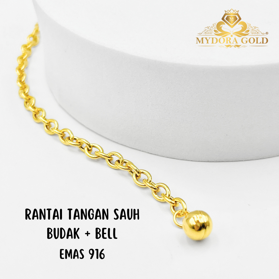 MYDORA Rantai Tangan Sauh Budak + Bell | EMAS 916/22K