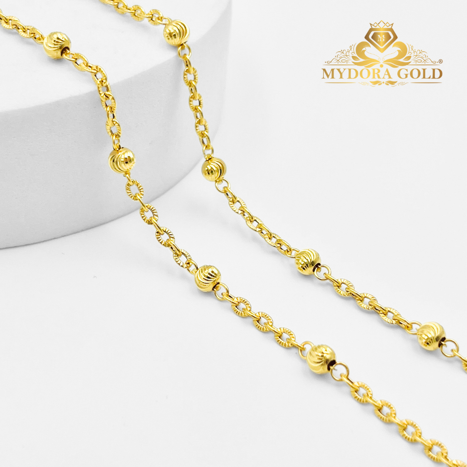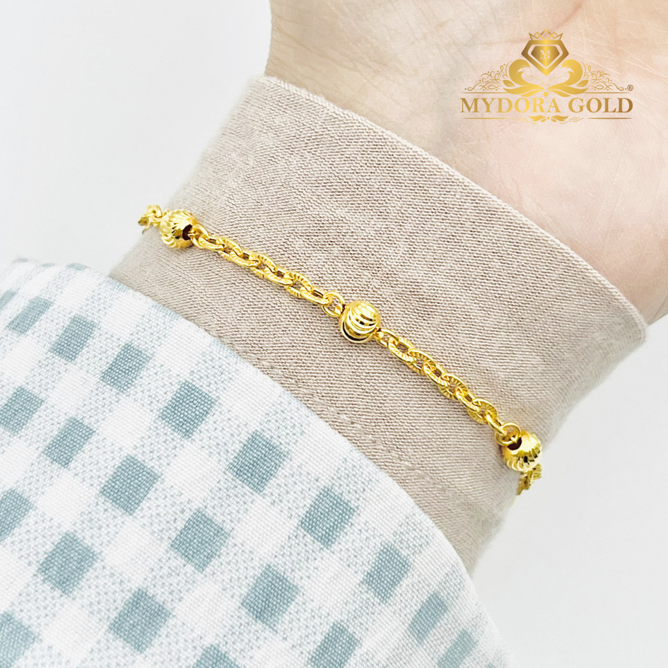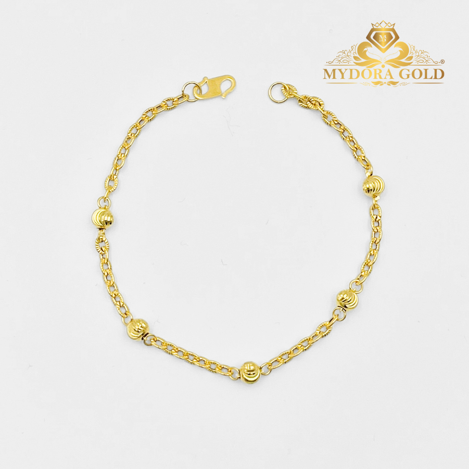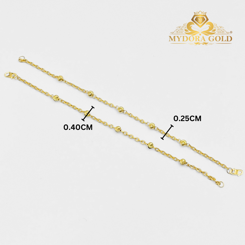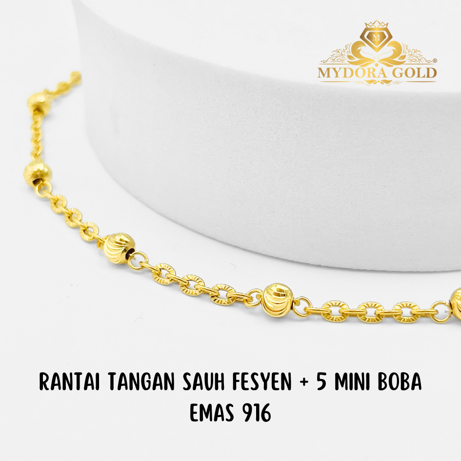 Rantai Tangan Sauh Fesyen + 5 Mini Boba Material : Emas 916 Berat : 2.80gm ++ Lebar Sauh : 0.25cm Lebar Boba: 0.40cm Panjang : 17cm - 18cm