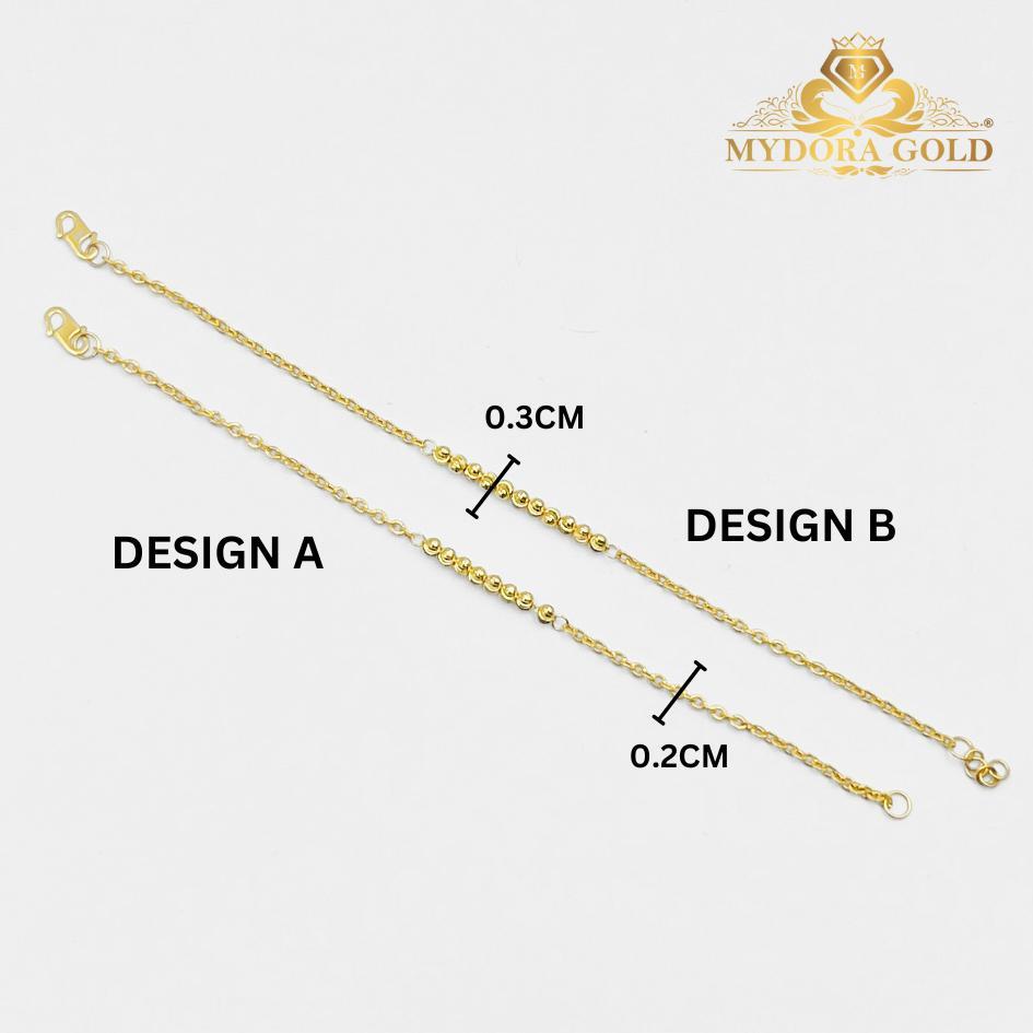 Product Info : Rantai Tangan Sauh Fesyen Boba Material : Emas 916 Design A Design B - with extension chain Berat : 1.56gm - 2.12gm ++ Lebar Sauh : 0.2cm Lebar Boba: 0.3cm+- Panjang : 15cm - 18.5cm