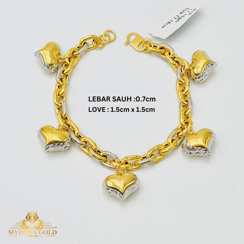 Product Info: Material : EMAS 916 / 22k Lebar Sauh : 0.7cm Lebar Love: 1.5cm x 1.5cm Weight : 17gm+/- Please take note: Weight +/- 0.05gm ** HOLLOW ITEM, PLEASE WEAR WITH CARE **