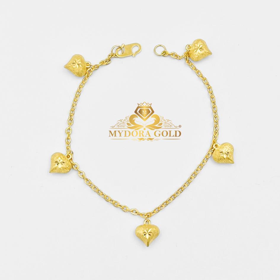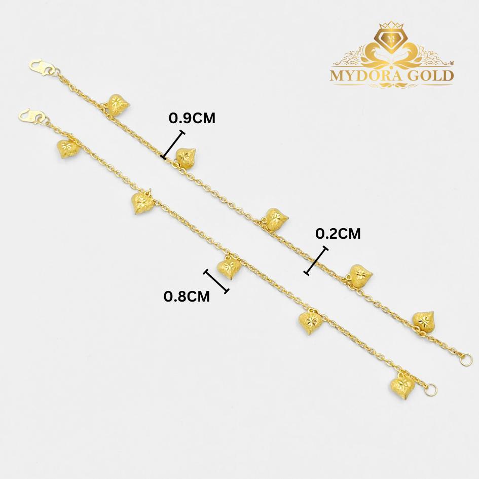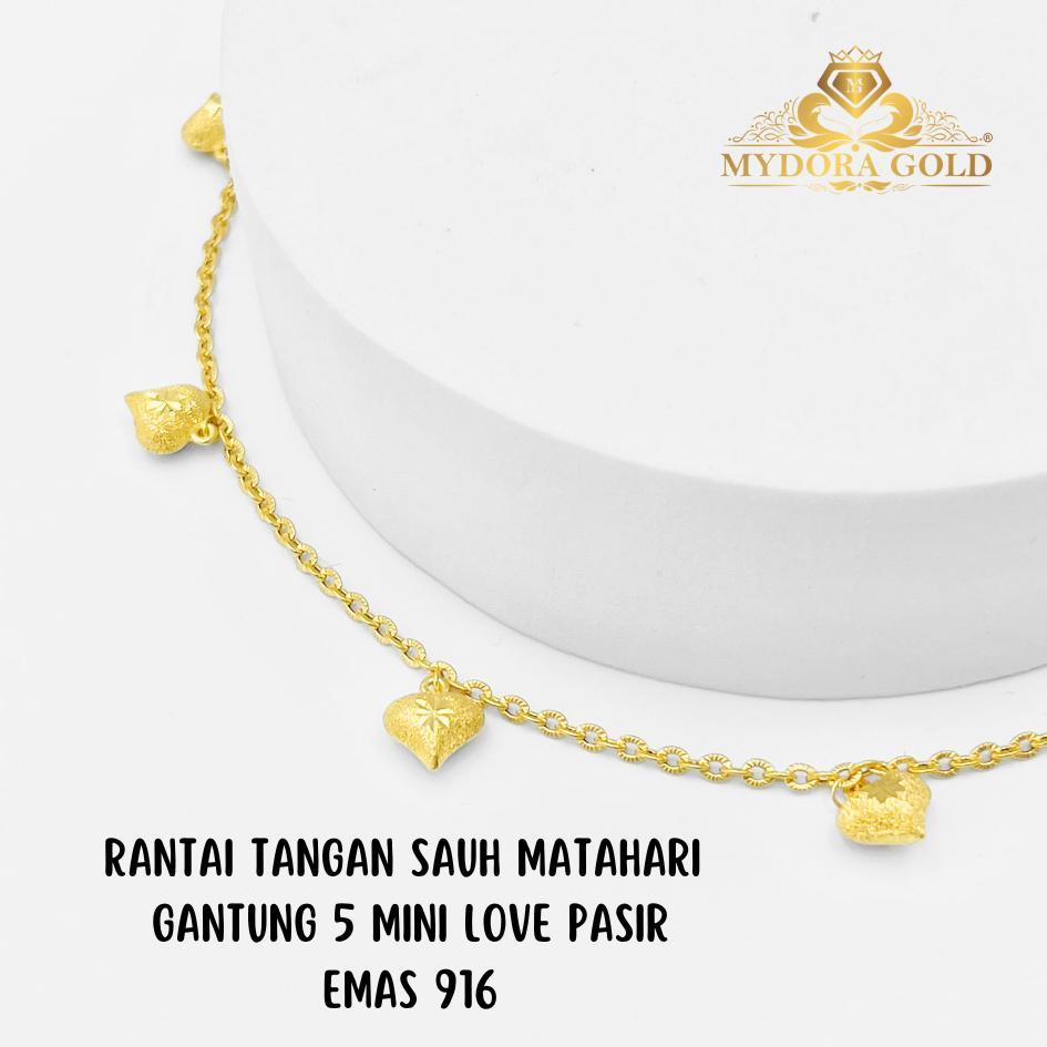 Product Info : Rantai Tangan Sauh Matahari Gantung 5 Mini Love Pasir Material : Emas 916 Berat : 3.07gm - 3.15gm +/- Lebar Sauh : 0.2cm Lebar LOVE: 0.8cm x 0.9cm Panjang : 16.5cm - 18.0cm