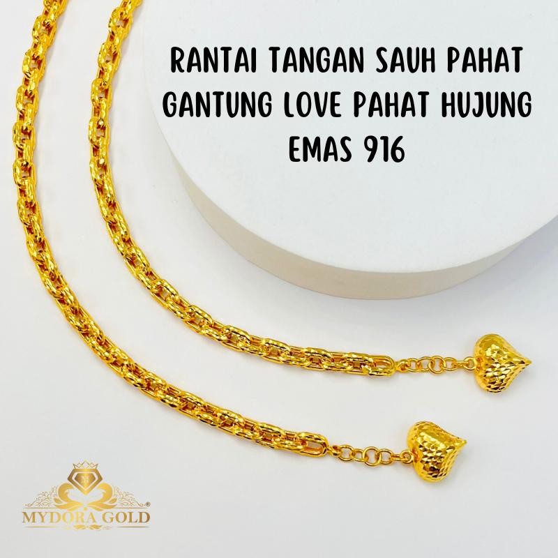 MYDORA Rantai Tangan Sauh Pahat Gantung Love Pahat Hujung | EMAS 916/22K