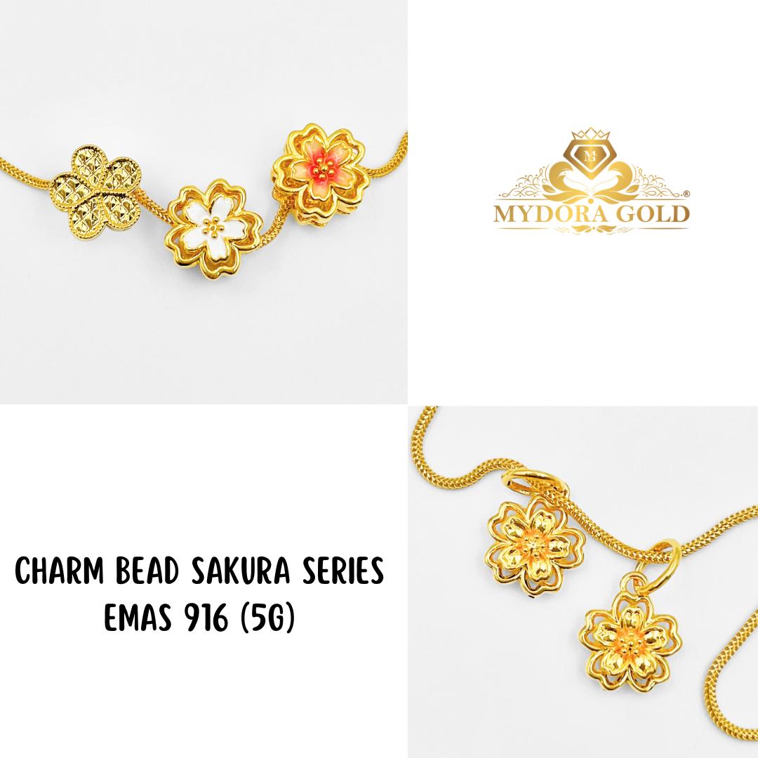 Charm Bead Bunga Sakura Enamel (5G Technology - Hollow)