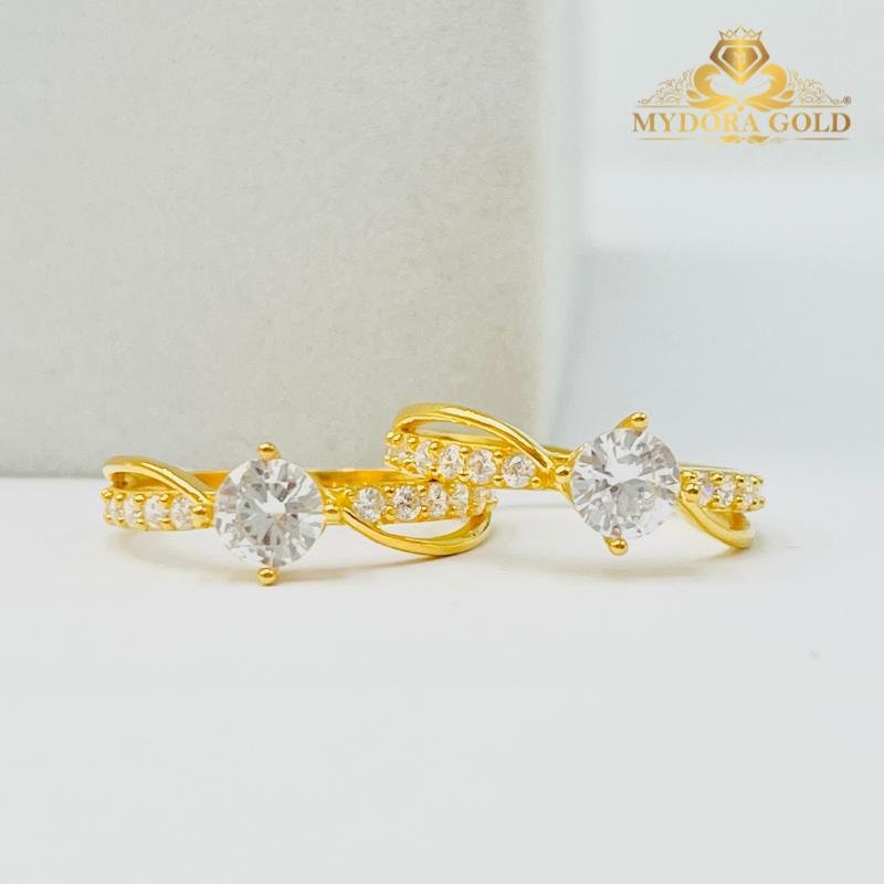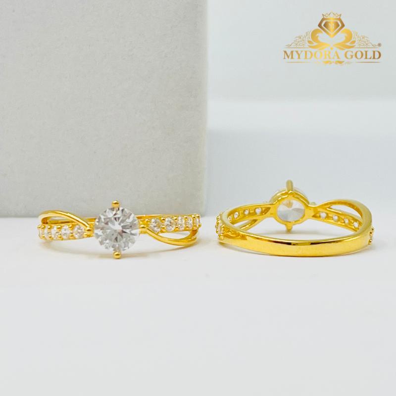 This MYDORA Cincin Batu CZ Galaxy Cross is a stunning gold ring crafted from 916/22K gold, featuring a dazzling Zirconia stone in the shape of a galaxy cross.