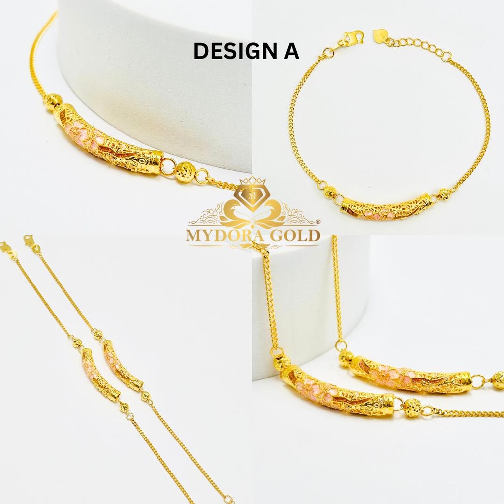 Product Info: Rantai Tangan Mesin Bamboo Kerawang Material : EMAS 916 Gold Lebar Boba: 0.3cm Lebar Mesin: 0.1cm Berat : 2.35gm - 2.45gm