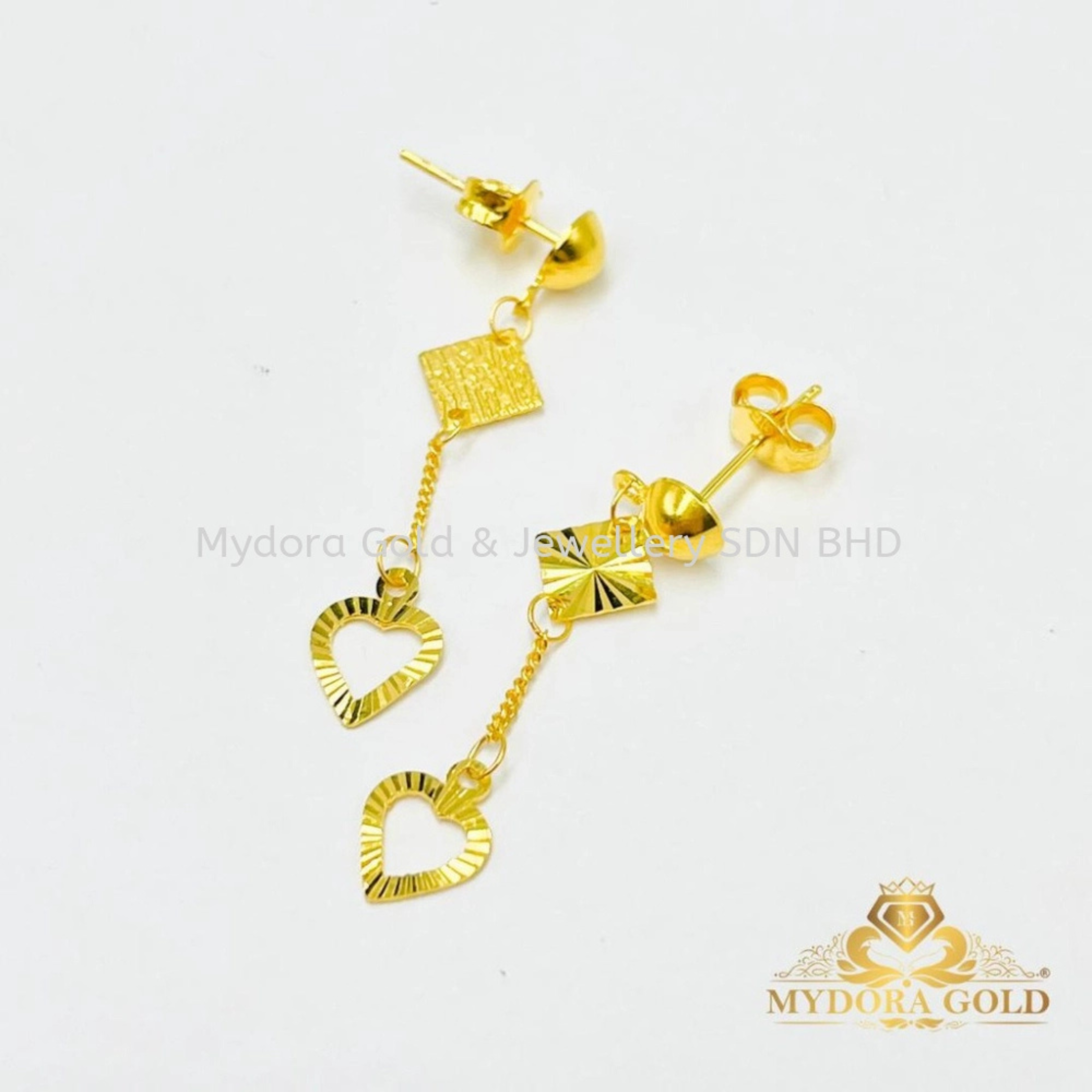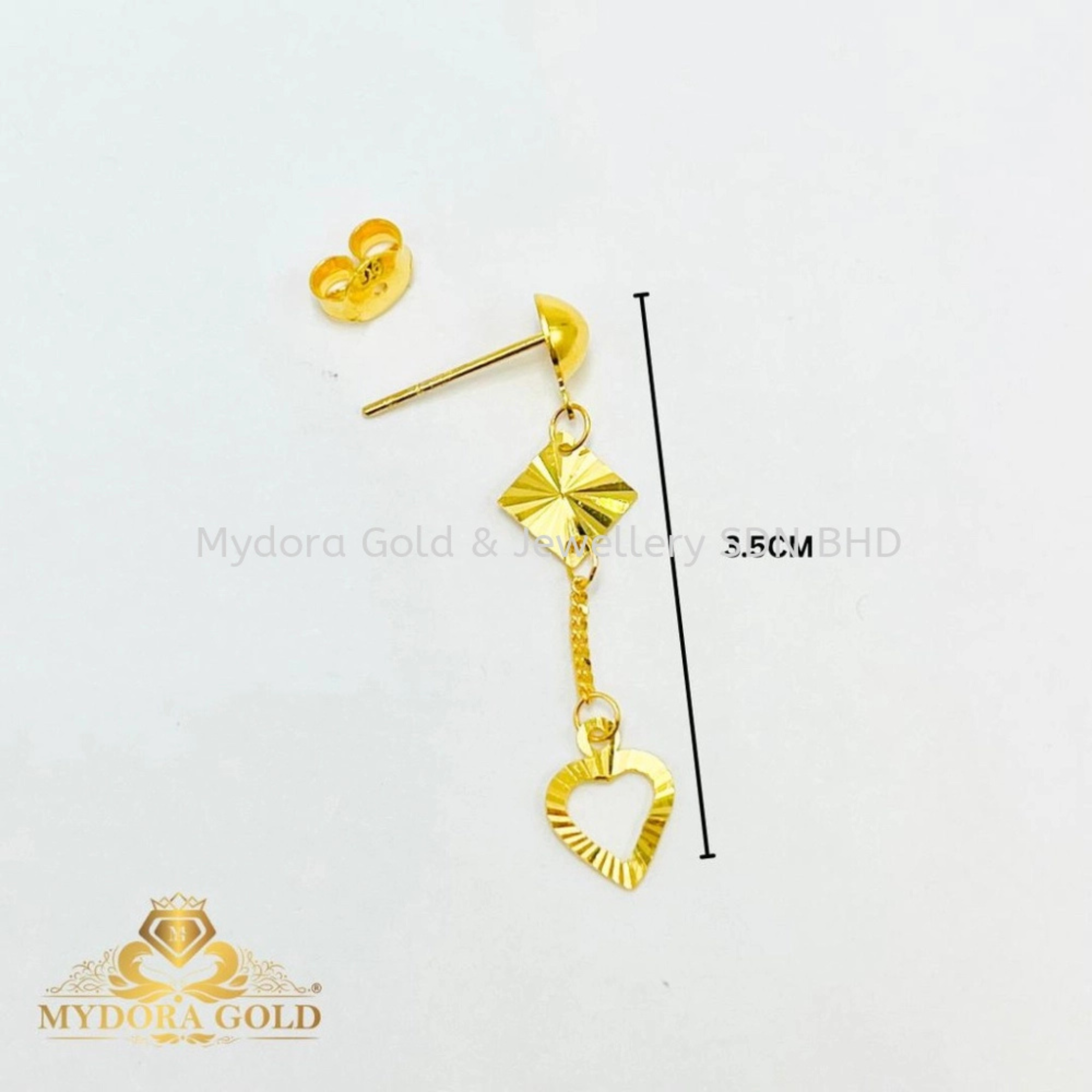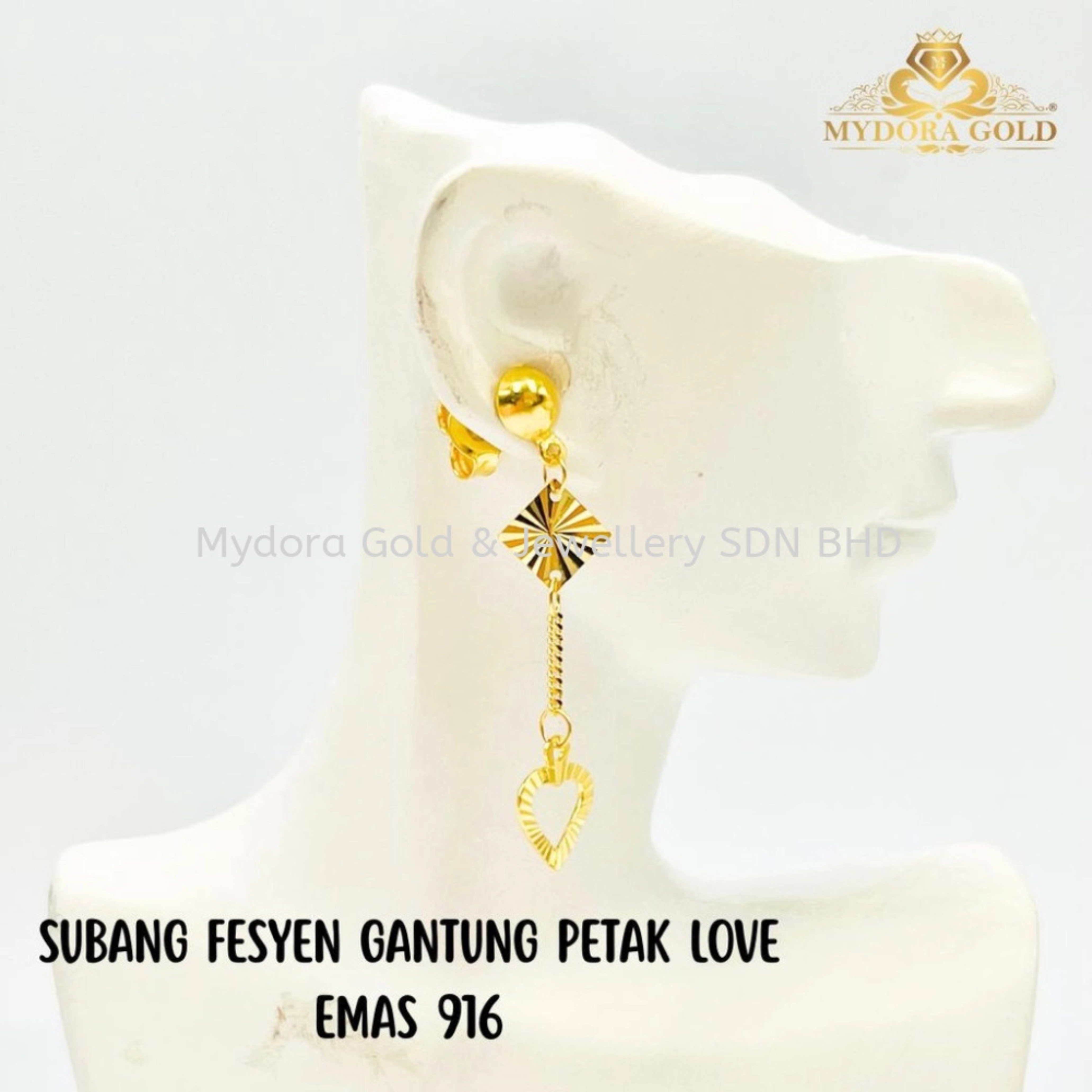 Subang Fesyen Gantung Petak Love Material : EMAS 916 Berat : 1.75gm+/-